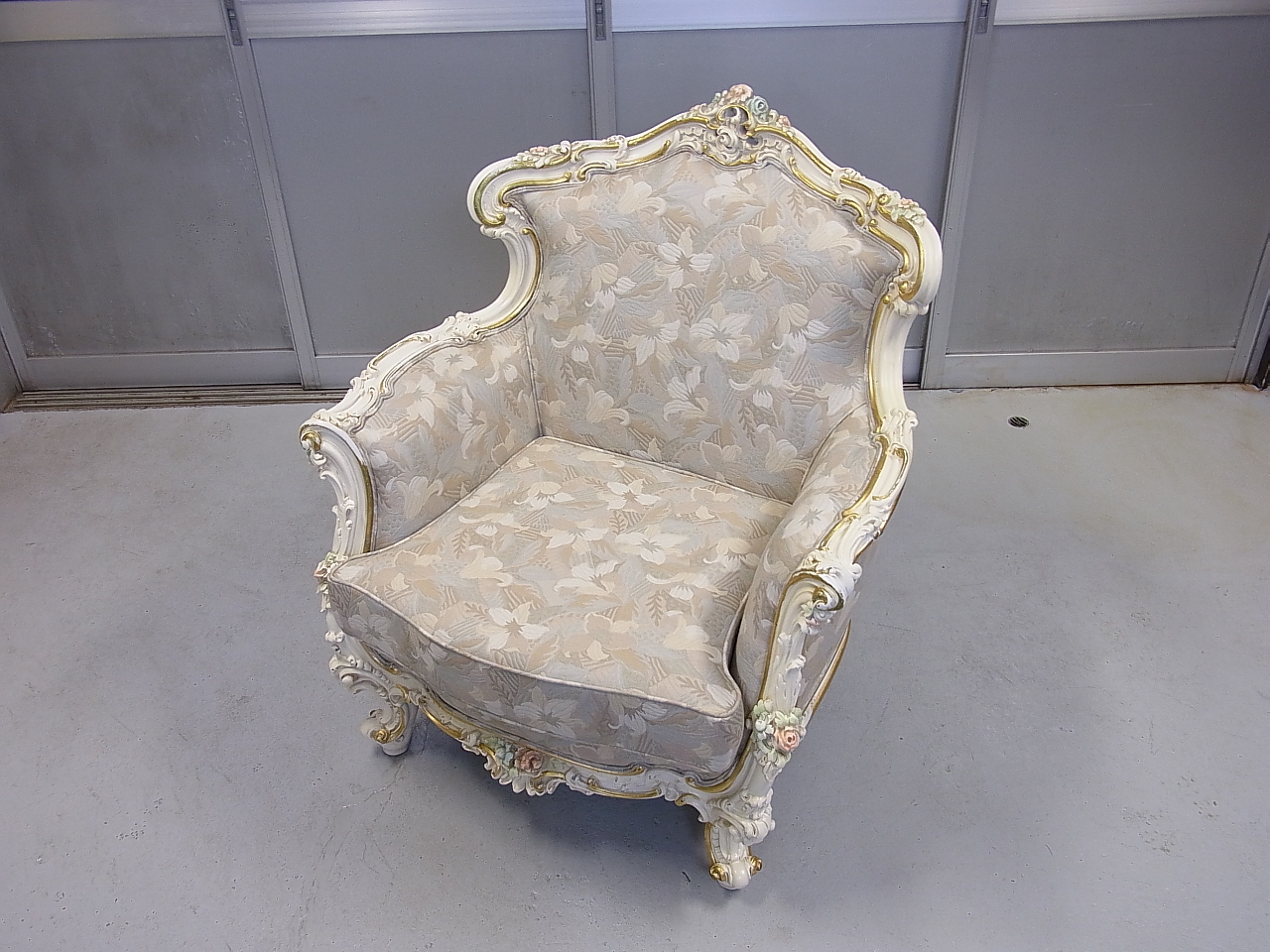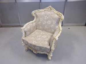 今回はペイズリー柄の生地を使用しウレタン交換かけ再塗装し仕上げました。
