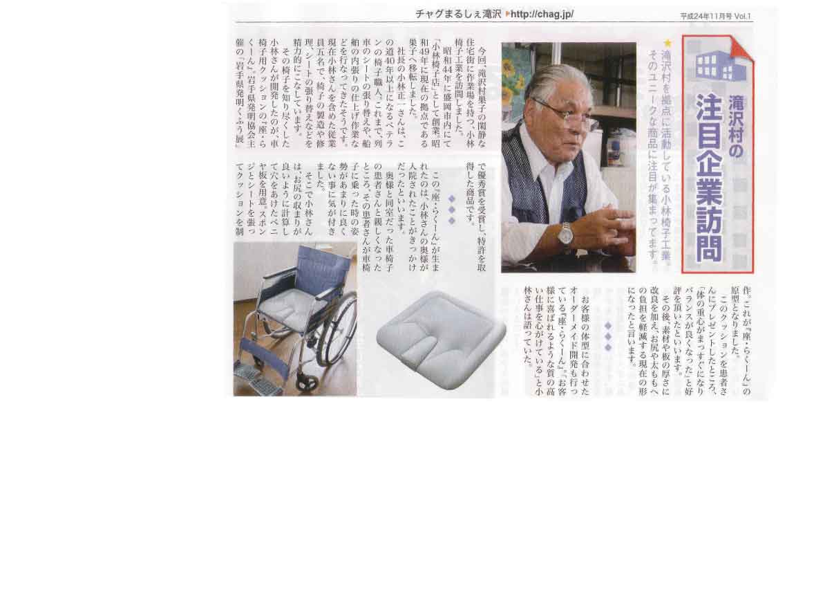 滝沢村観光協会のフリーペーパー”チャグまるしぇ滝沢 Vol.1”に掲載されました。