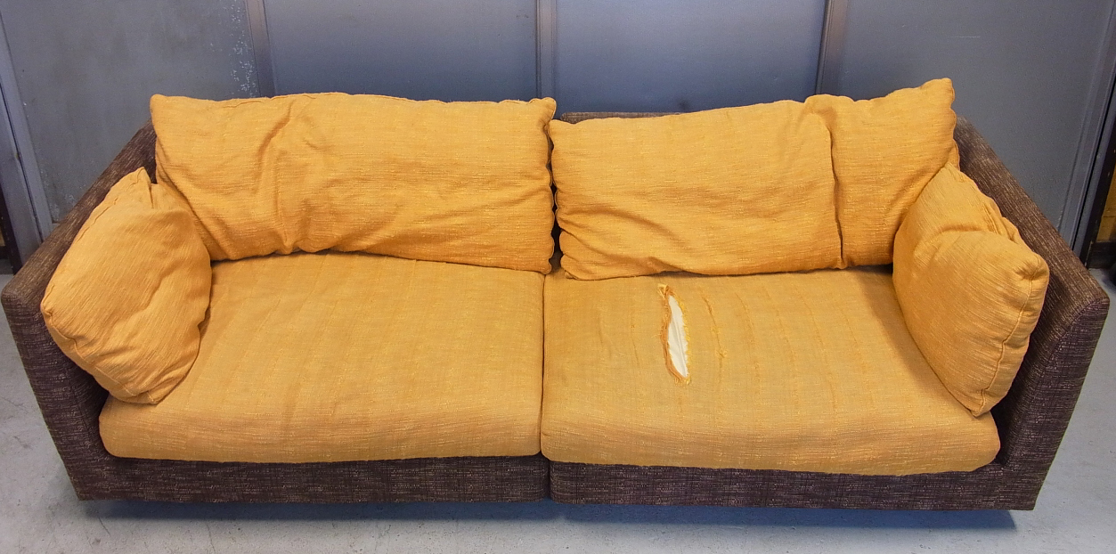 クッション部分が生地破損してしまったのでクッション部分を張替えをおこないました。