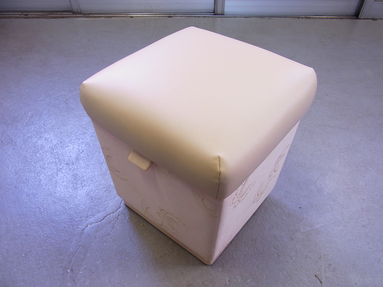 座マチの模様を活かし脚部分の色に合わせビニールレザーを使用し仕上げました。