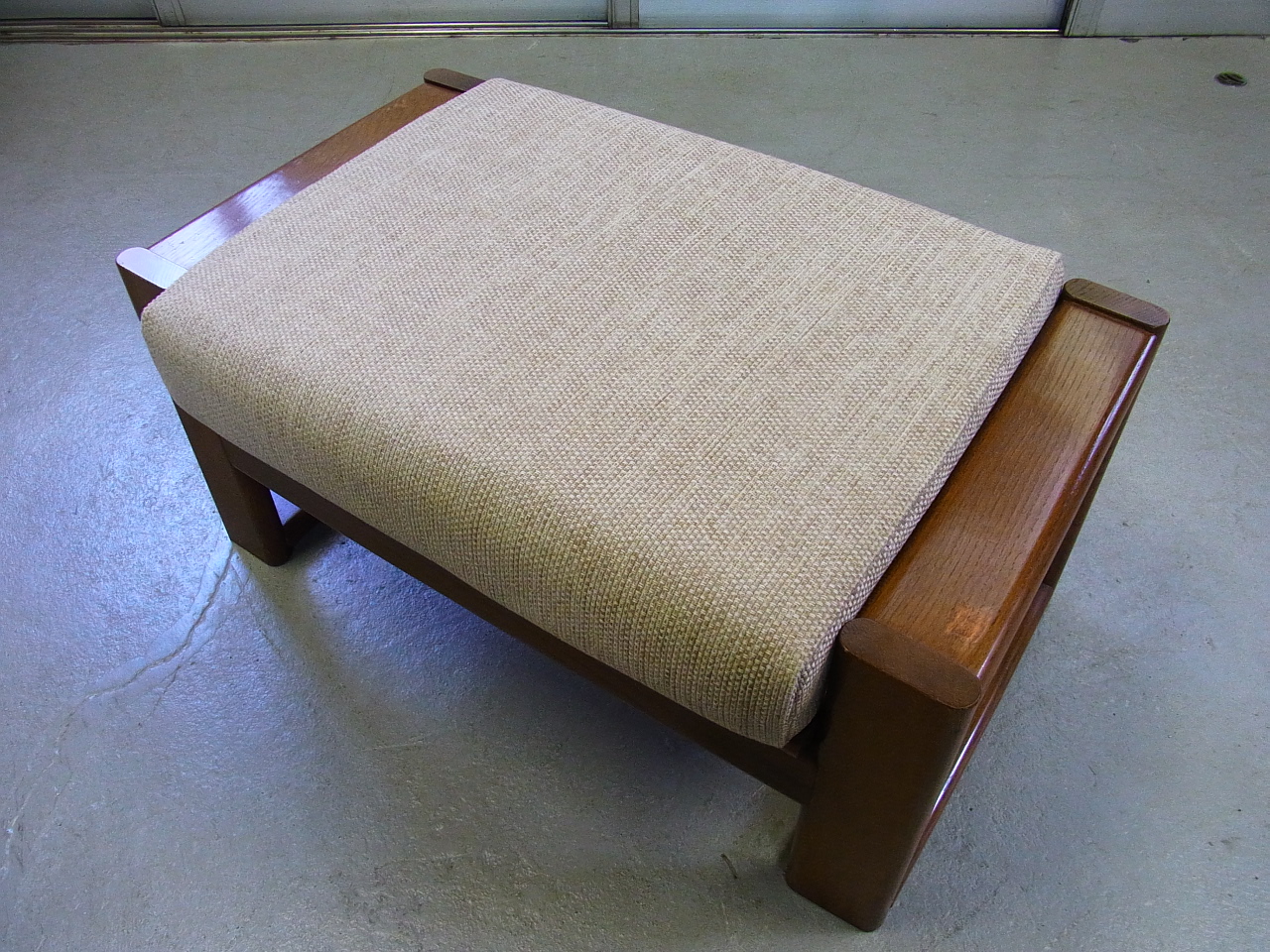 今回はベージュ色の張地でシンプルにボタンなしで仕上げました。