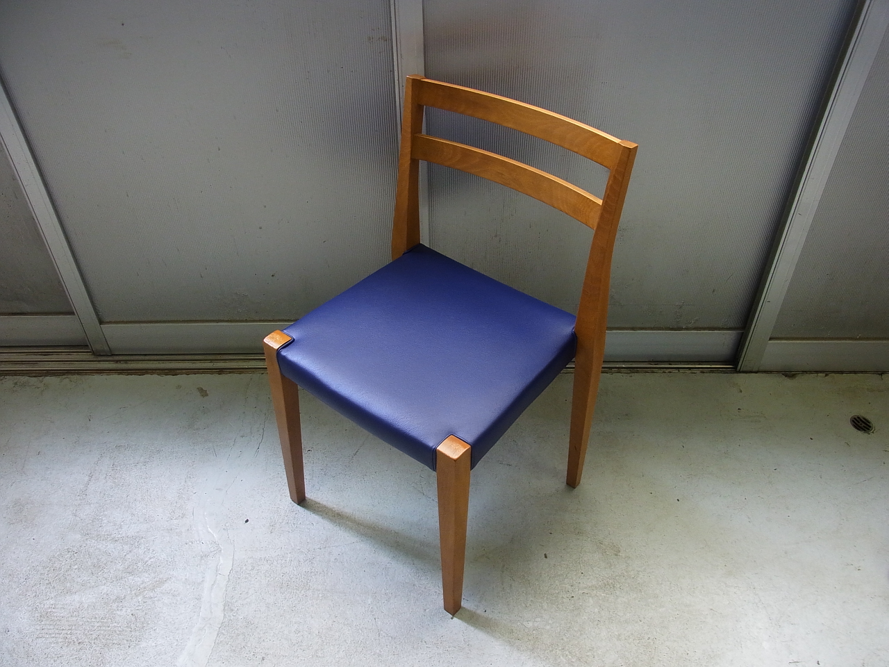 今回は紺系のビニールレザー使用しウレタン調整をおこない仕上げました。