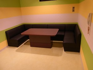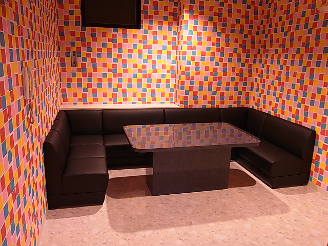 今回、カラオケ店のBox椅子の張り替えをおこないました。 今回は椅子内部のバネを撤去し板を敷き全室黒色ビニールレザーで仕上げました。