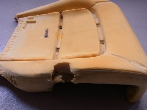 破損部分をウレタン専用カッターで切り抜きウレタン取りつけました。